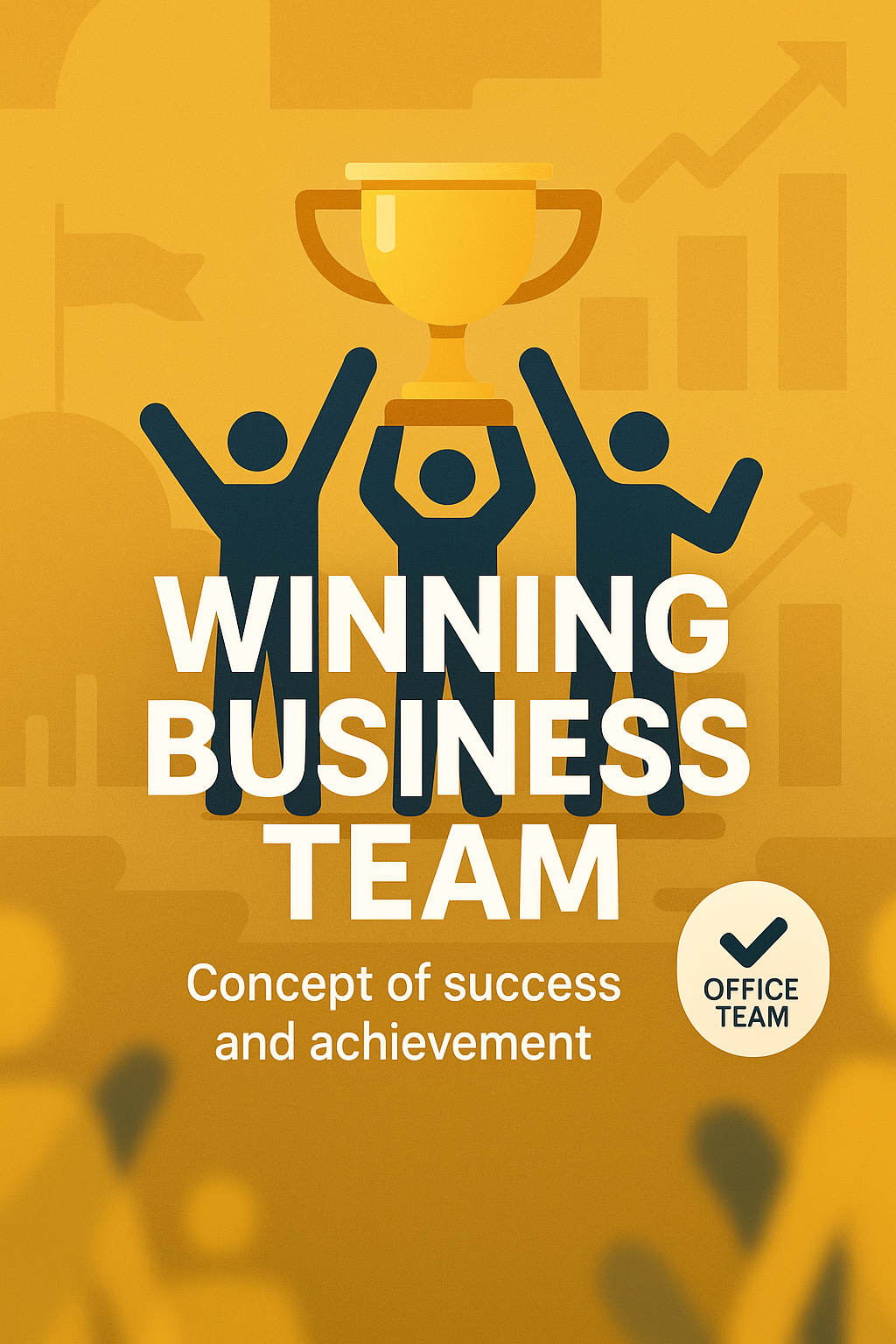 /Collection: /by davooda/Type: PNG/Dynamic illustration representing a winning business team celebrating success, featuring a trophy and vibrant color scheme, ideal for corporate presentations or motivational content.