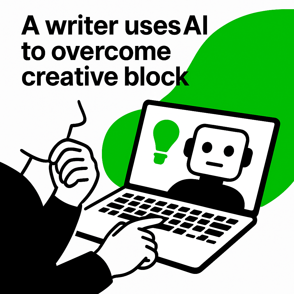 Illustration of Writer Using AI to Overcome Creative Block