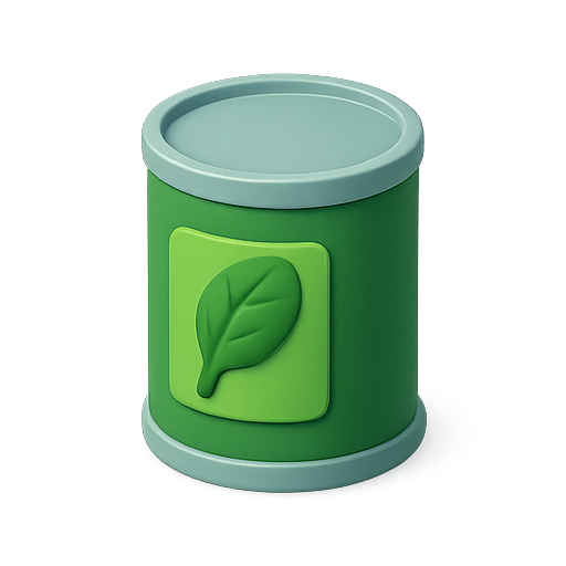 3D Green Bio-Fuel Canister Icon with Leaf Design