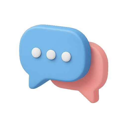 A modern 3D icon depicting stylized chat bubbles in blue and pink colors, ideal for communication apps or digital interfaces. The design is playful and visually appealing.