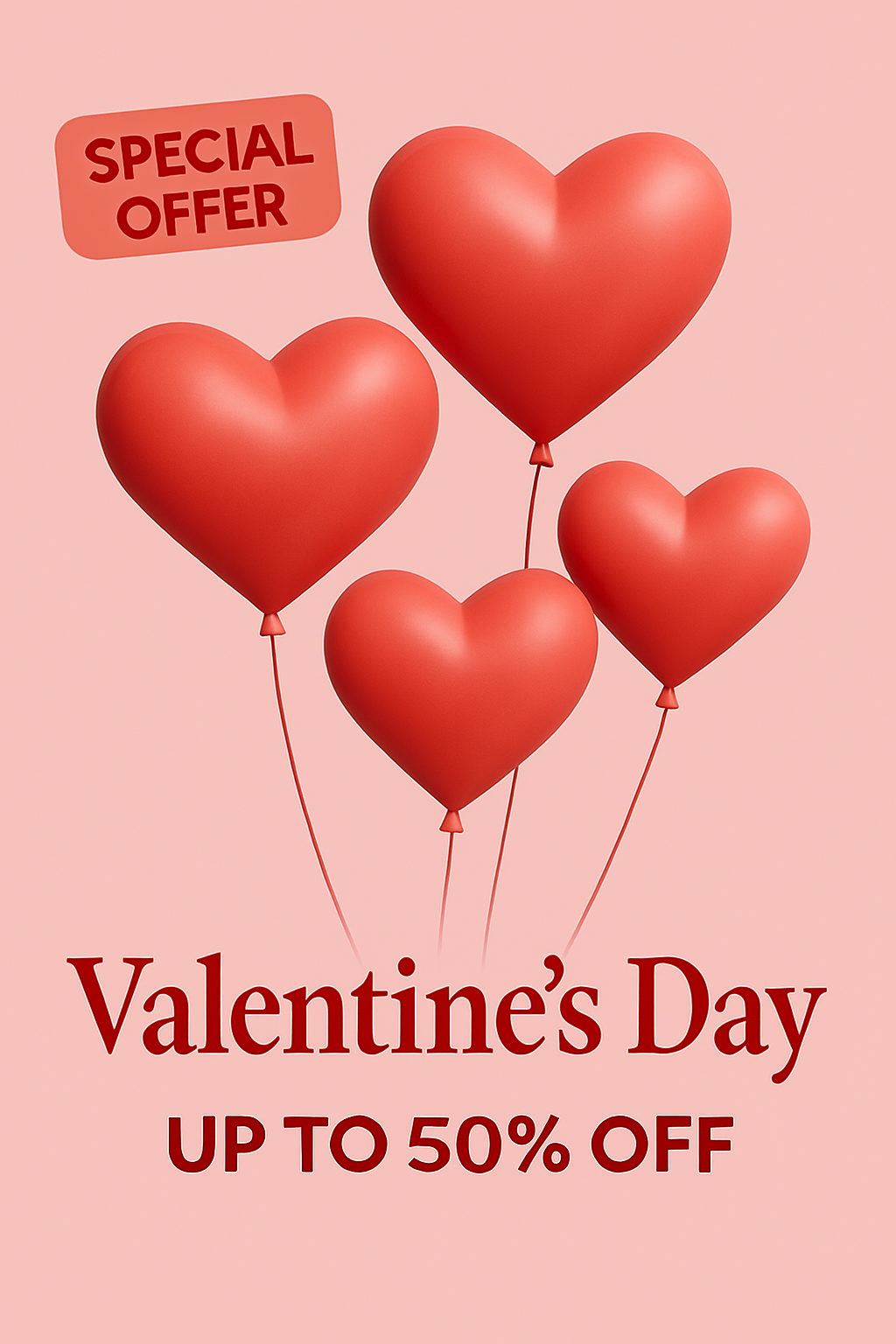 /Collection: /by Sergey Leonov/Type: PNG/Festive promotional graphic featuring heart-shaped balloons, ideal for Valentine's Day marketing campaigns. The design is vibrant and playful, appealing to couples and gift shoppers.