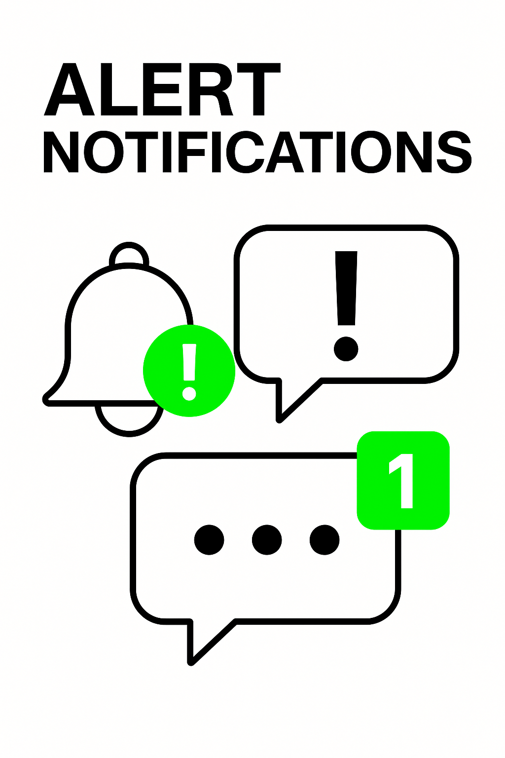 Simple and modern graphic depicting alert notifications with icons, suitable for mobile apps or web interfaces highlighting new messages or alerts.