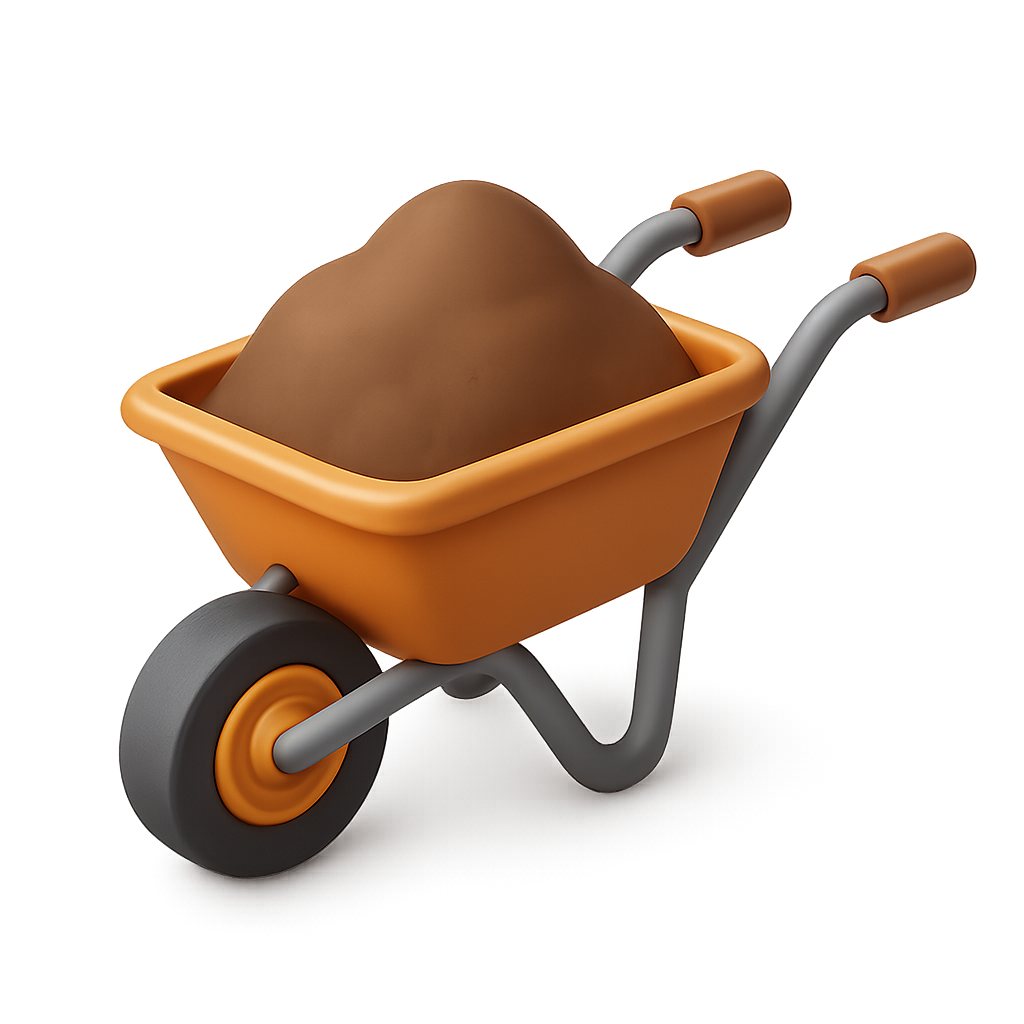 Stylized 3D Wheelbarrow Icon with Dirt in Isometric View