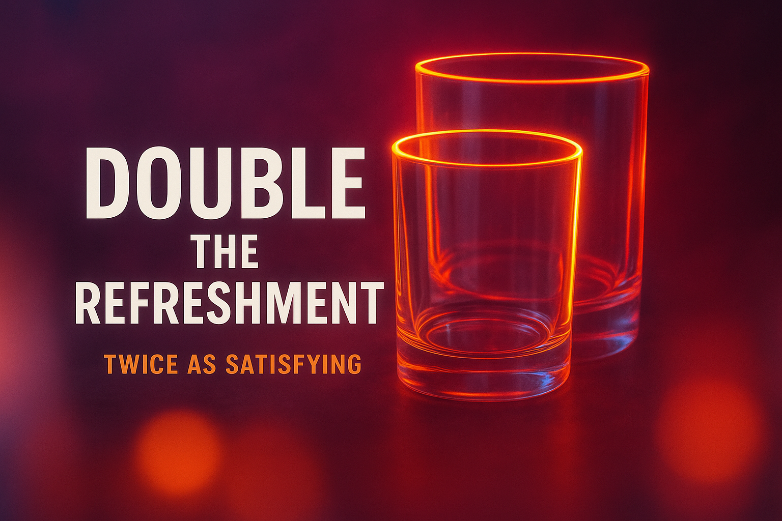 /Collection: /by davooda/Type: PNG/A visually striking advertisement featuring two glowing glass tumblers with neon accents. The background has a soft, ethereal haze that enhances the luminous effect.
