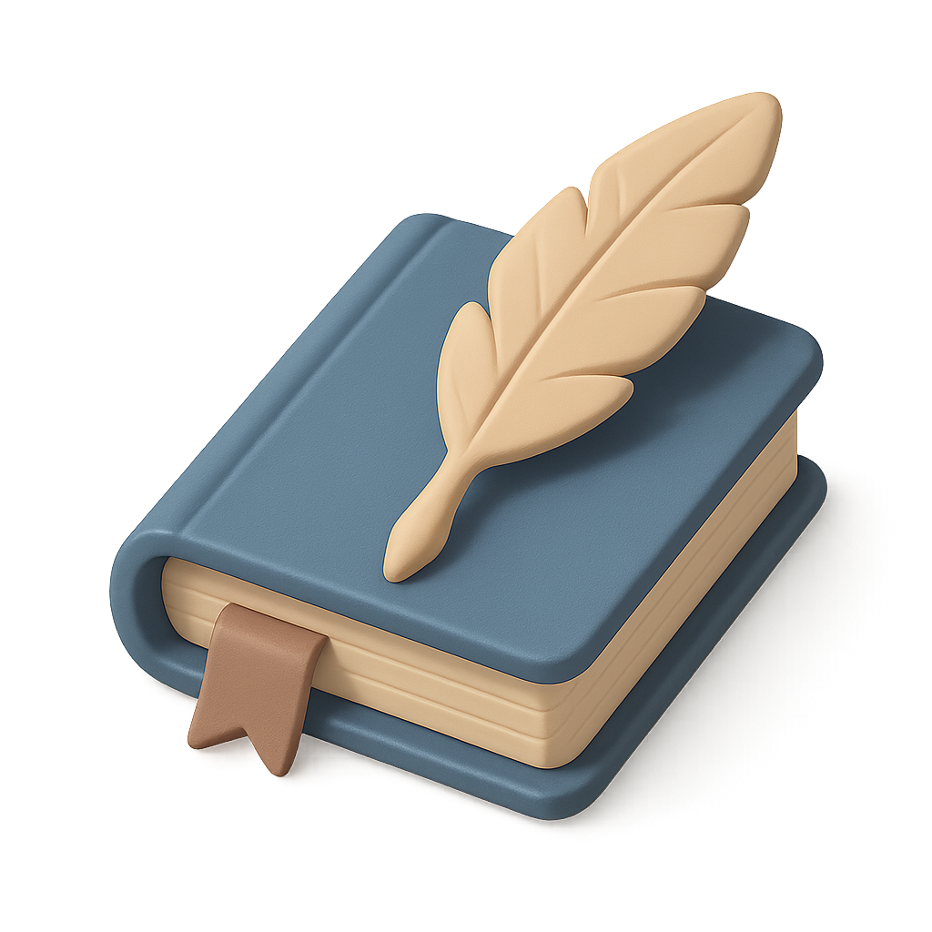 Stylized 3D Literature Icon with Book and Quill