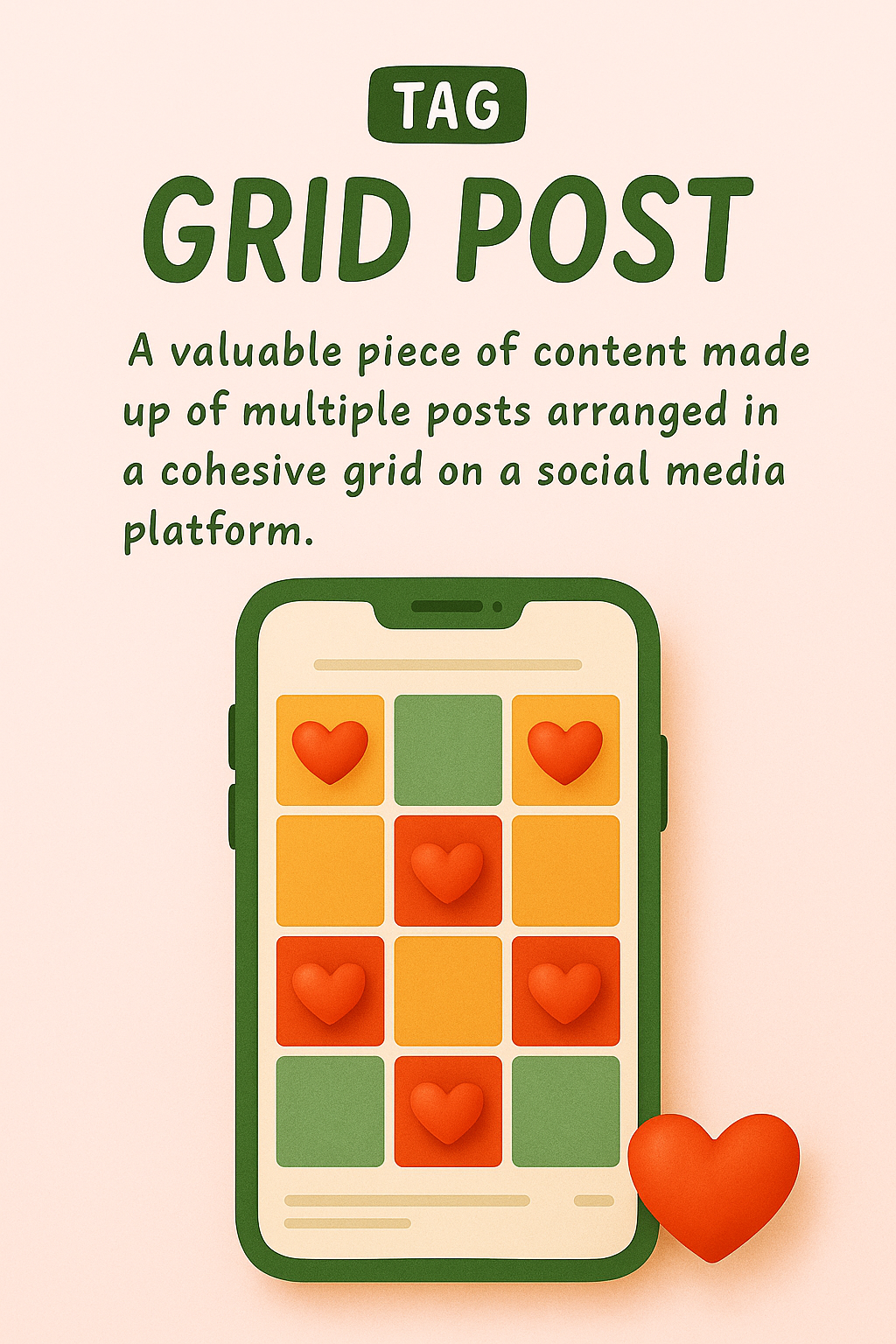 Creative Social Media Grid Post Concept with Phone and Heart Icons
