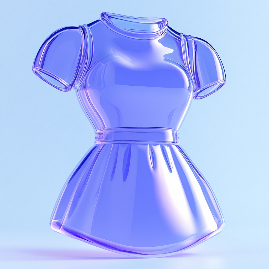 A modern 3D rendering of a transparent dress, showcasing a unique design with a soft, glossy finish. Ideal for fashion marketing and product showcases.