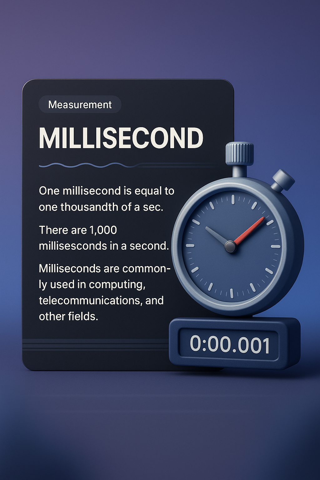 /Collection: /by davooda/Type: PNG/A 3D illustration depicting a stylish web page design focused on the concept of 'millisecond'. It features a stopwatch and descriptive text within a modern layout.