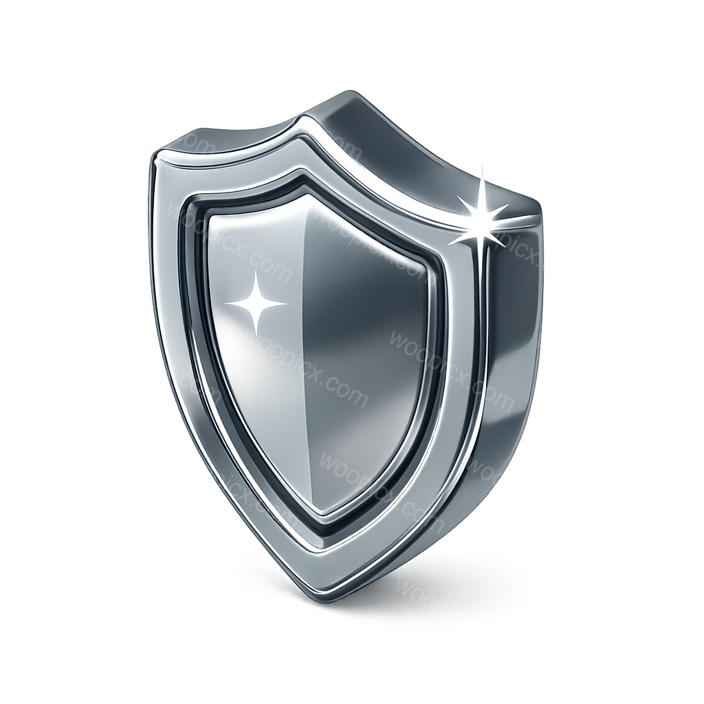 Stylish 3D Chrome Shield Icon with Reflective Finish