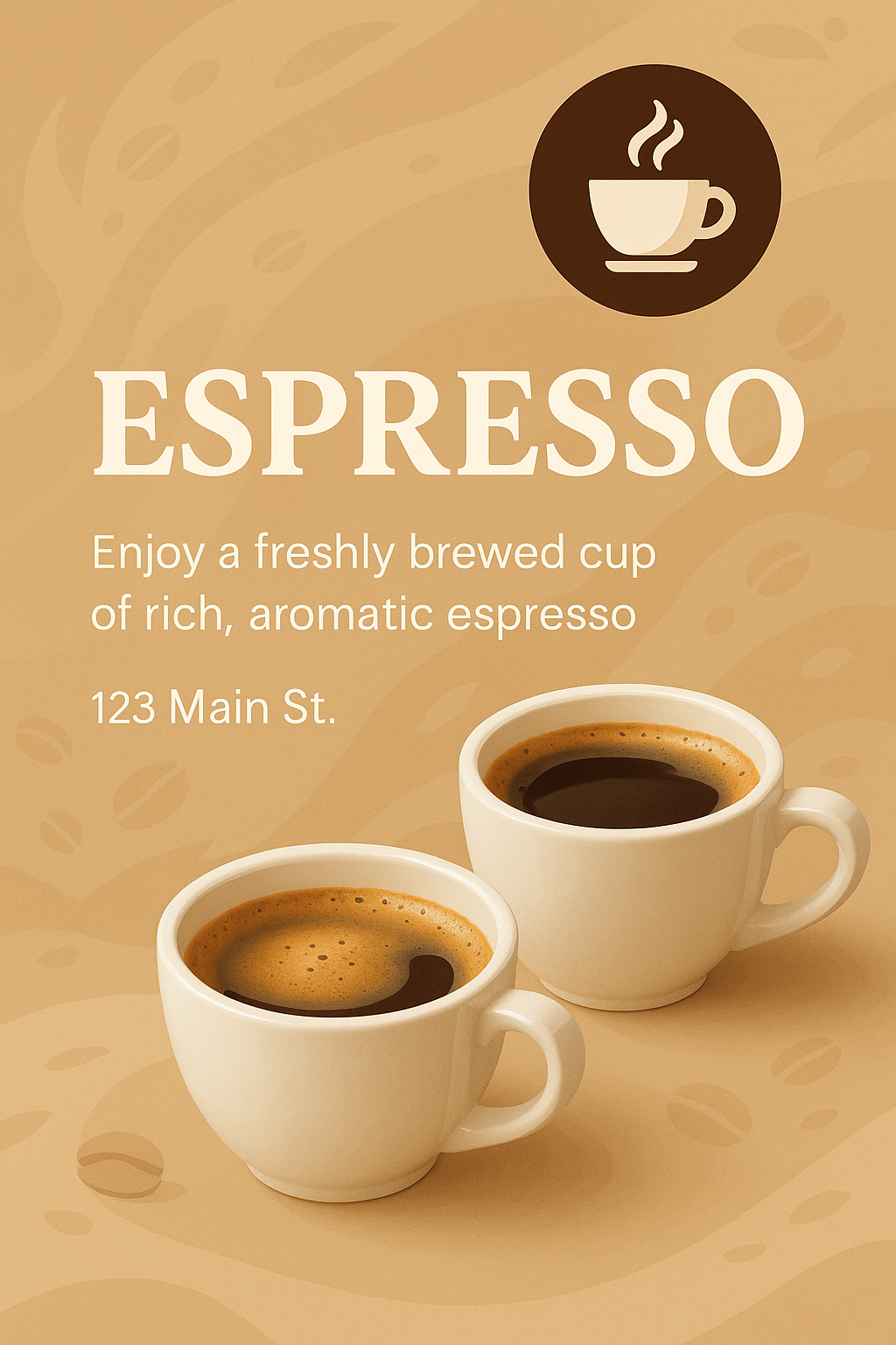 A visually appealing promotional poster for a coffee shop featuring two cups of espresso on a warm, inviting background. Ideal for marketing coffee products.