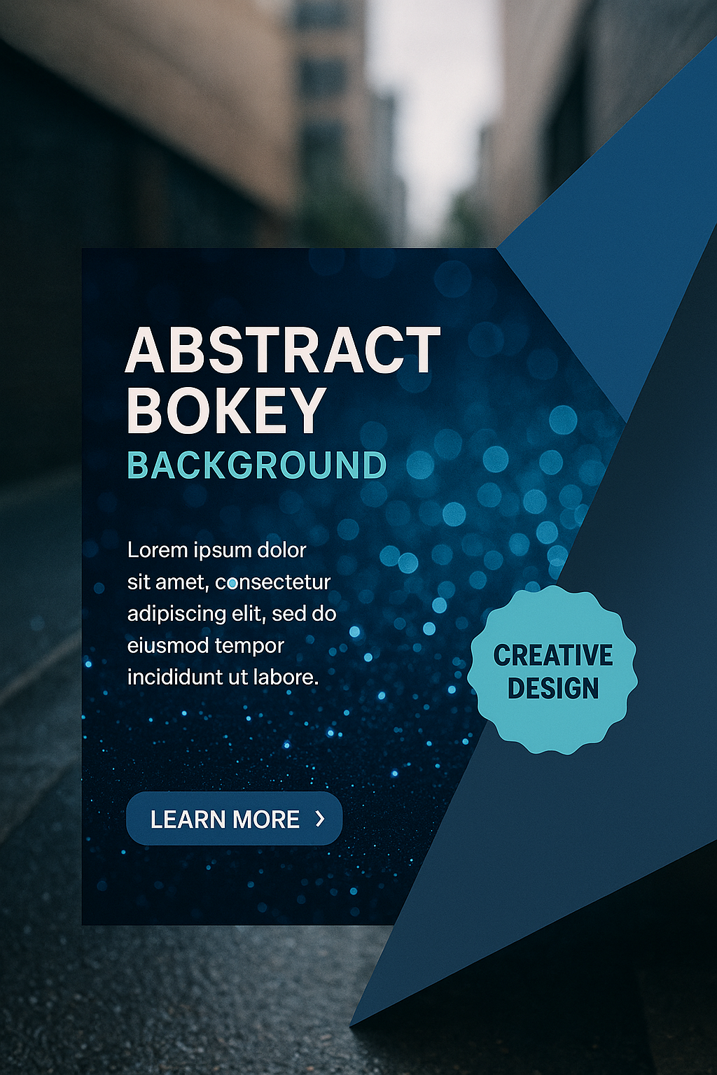 /Collection: /by davooda/Type: PNG/A captivating abstract bokeh background featuring a layered geometric design. The blue glow creates a vibrant atmosphere, accompanied by a clear call-to-action button and a creatively styled subtitle.