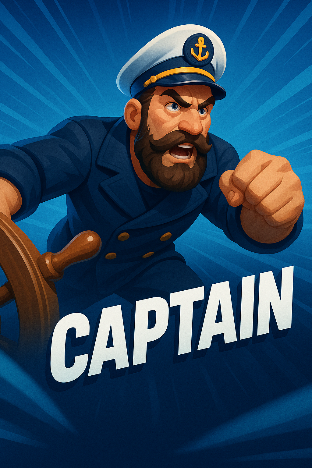 /Collection: /by davooda/Type: PNG/A vibrant illustration of a commanding captain at the helm, with a dynamic pose and expressive features. The background features a smooth gradient, enhancing the energetic feel.