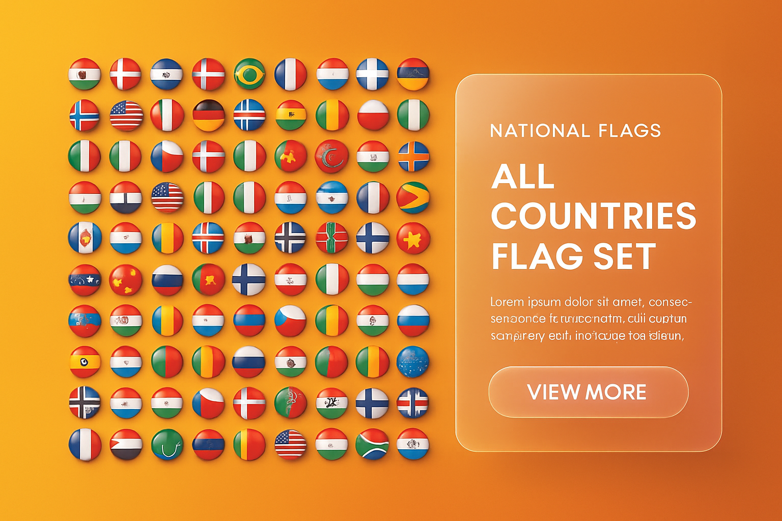 /Collection: /by davooda/Type: PNG/A visually appealing arrangement of various national flags displayed in a circular format against a soft gradient background. The design features modern glassmorphism panels with frosted effects and glowing edges, enhancing the futuristic aesthetic.