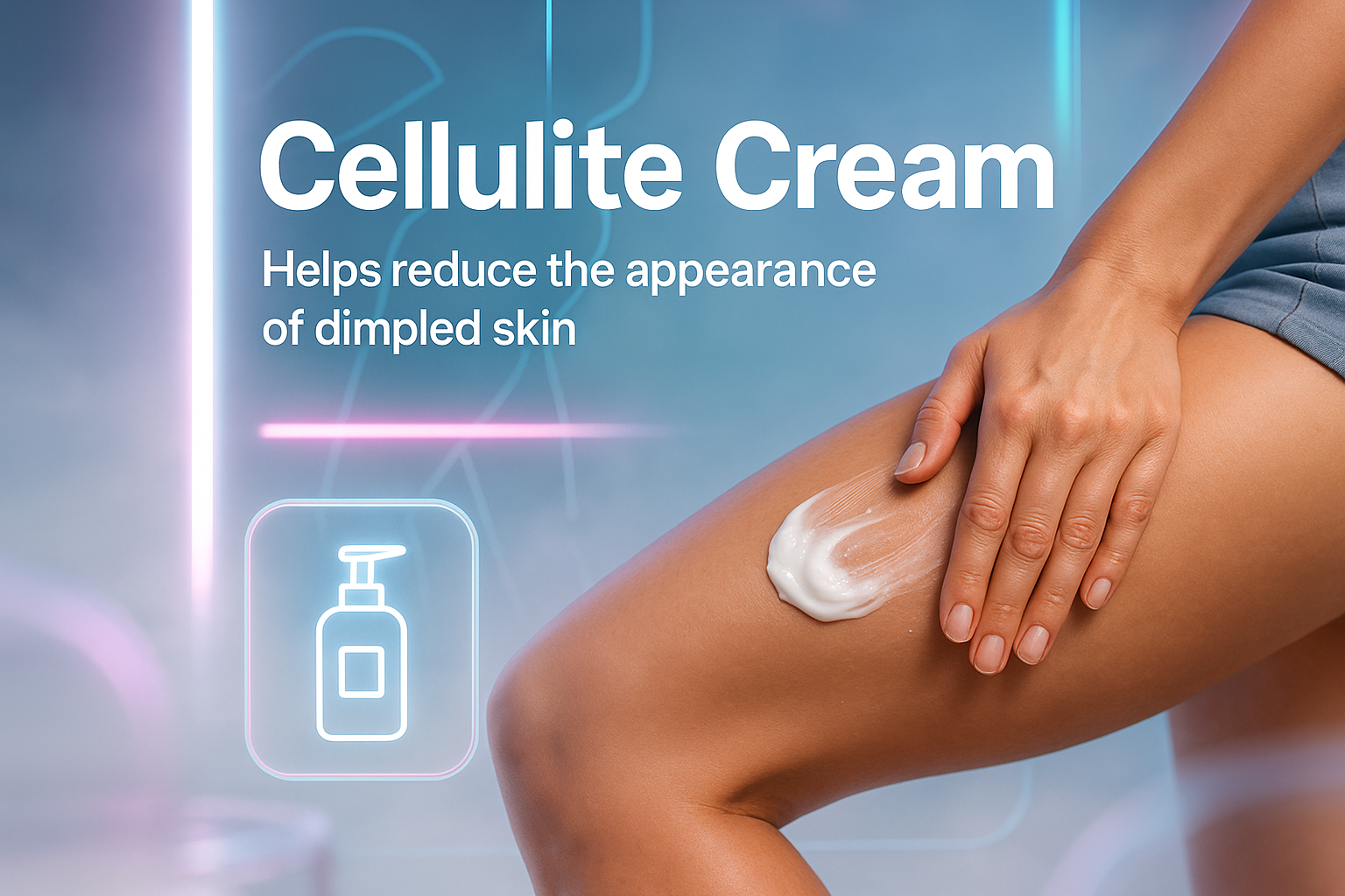 /Collection: /by davooda/Type: PNG/A sleek promotional graphic showcasing cellulite cream application, featuring modern design elements and a clean aesthetic suitable for beauty and skincare marketing.