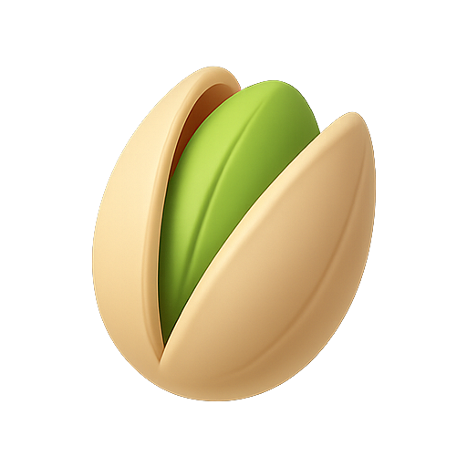 A realistic 3D rendering of a pistachio nut, showcasing its unique shell and inner kernel. Ideal for food-related marketing and product packaging.