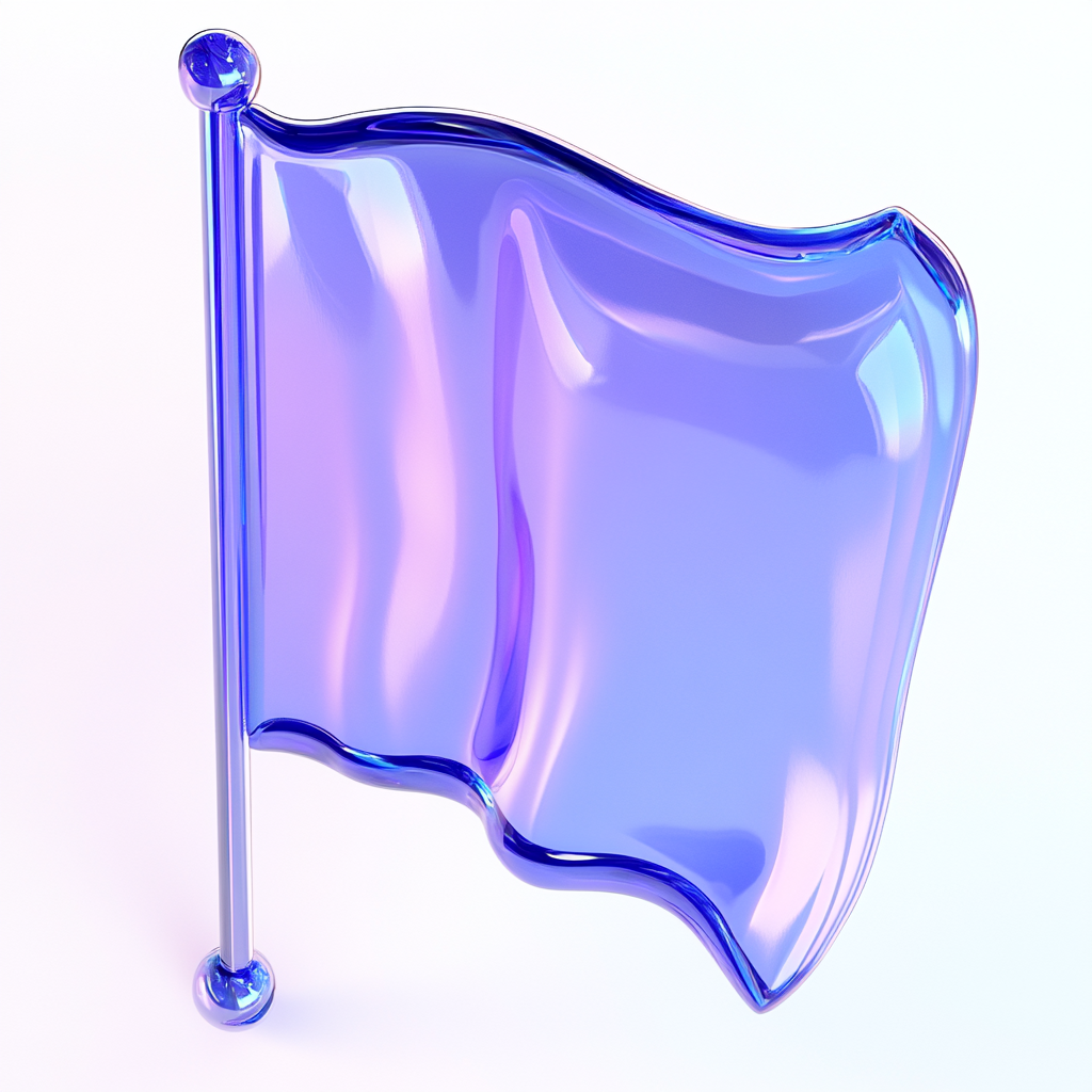 A stylized 3D representation of a flag featuring a glossy finish and vibrant purple hues. This image is suitable for digital design projects and branding.