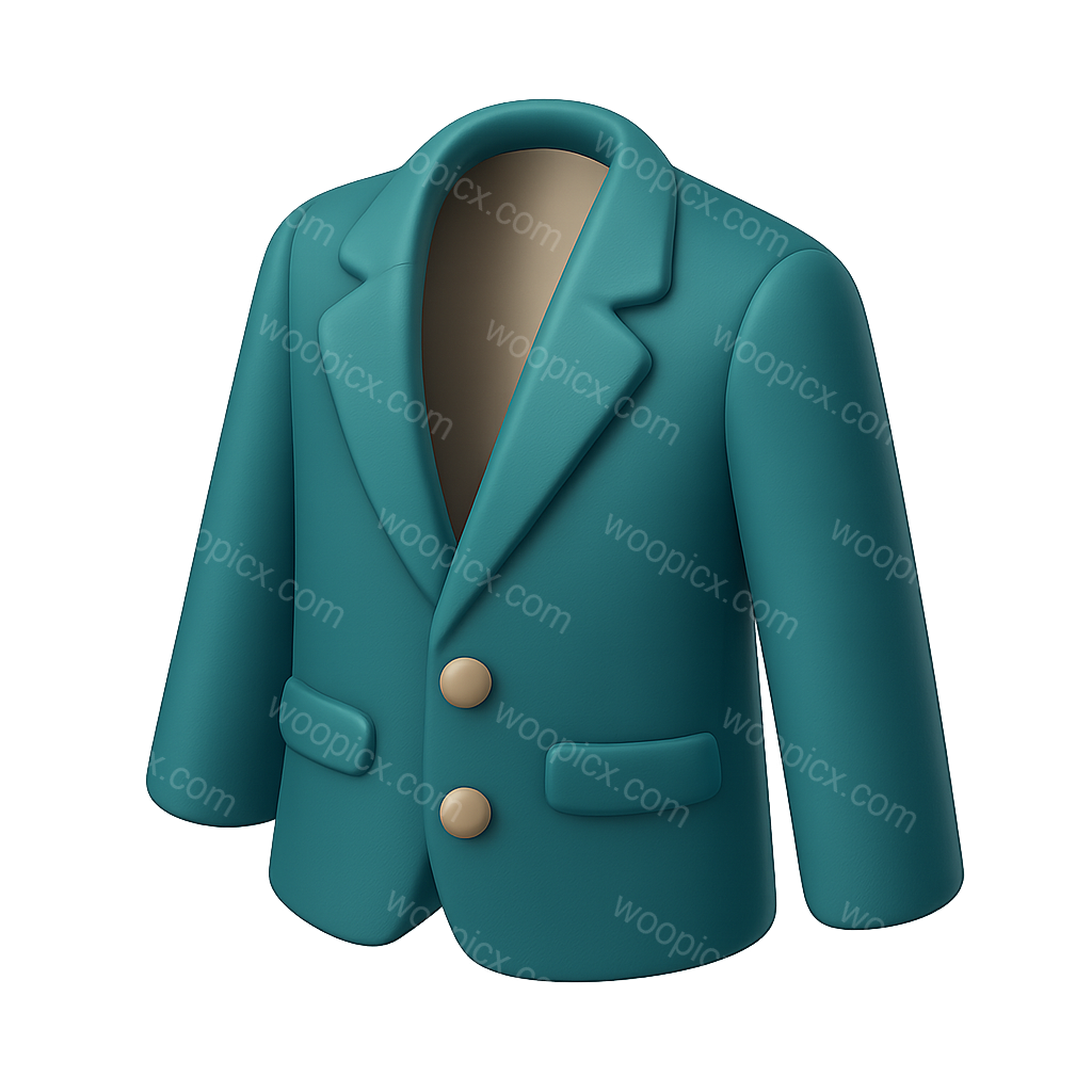 A modern 3D illustration of a blazer in a three-quarter view featuring a smooth texture and volumetric design. The blazer is teal with two buttons and no visible torso.