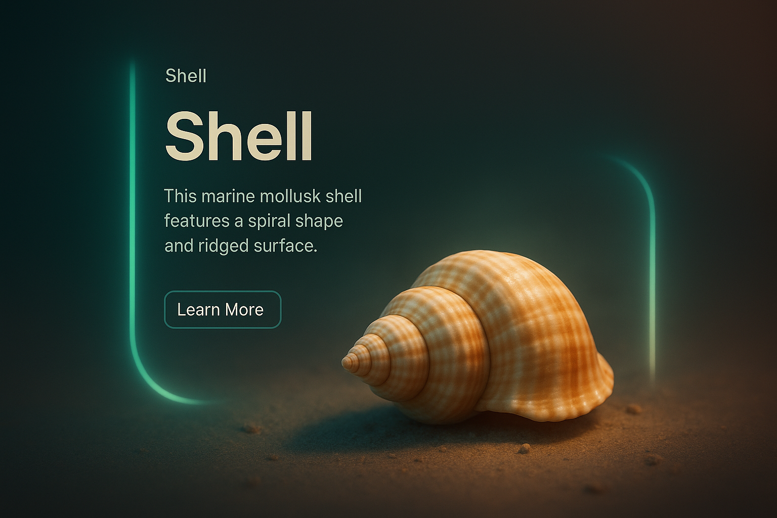 Neon-Inspired Shell in a 3D Scene with Text Elements