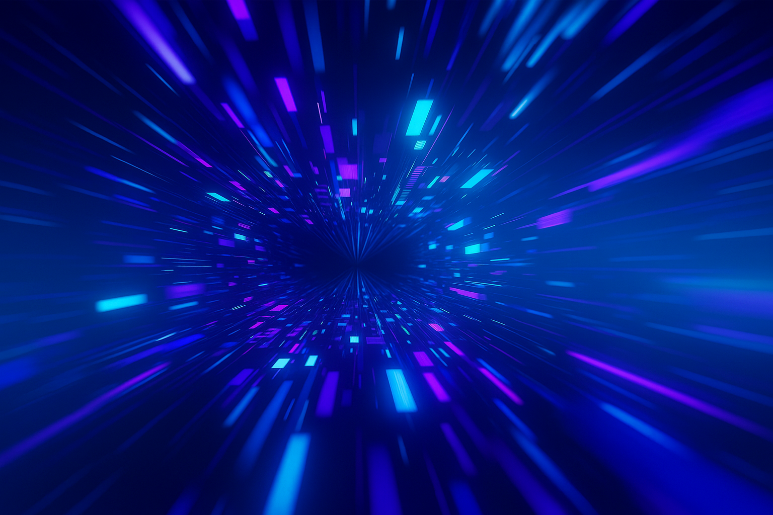 /Collection: /by davooda/Type: PNG/An engaging abstract digital background featuring vibrant blue and purple hues, conveying a sense of speed and technology. Ideal for themes related to AI and digital processes.