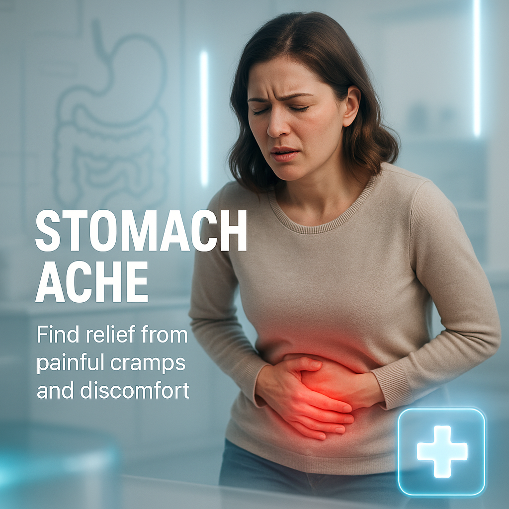Health Awareness Graphic on Stomach Aches and Relief Solutions