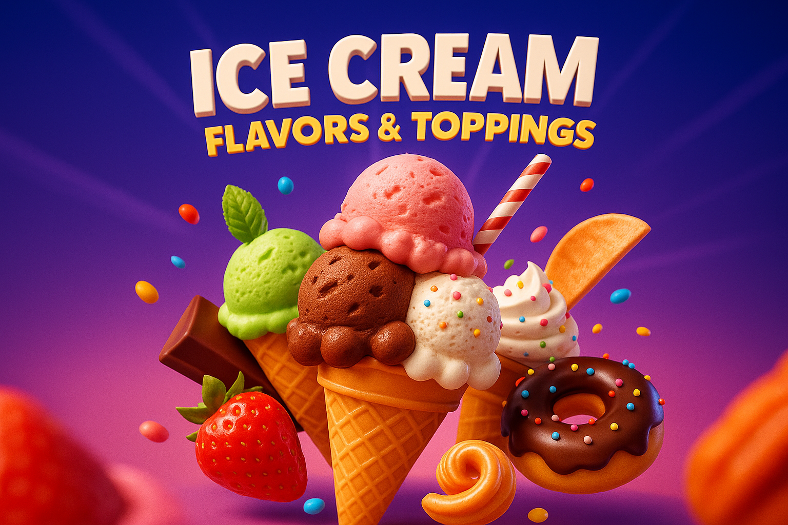 Dynamic Ice Cream Menu Featuring Flavors and Toppings