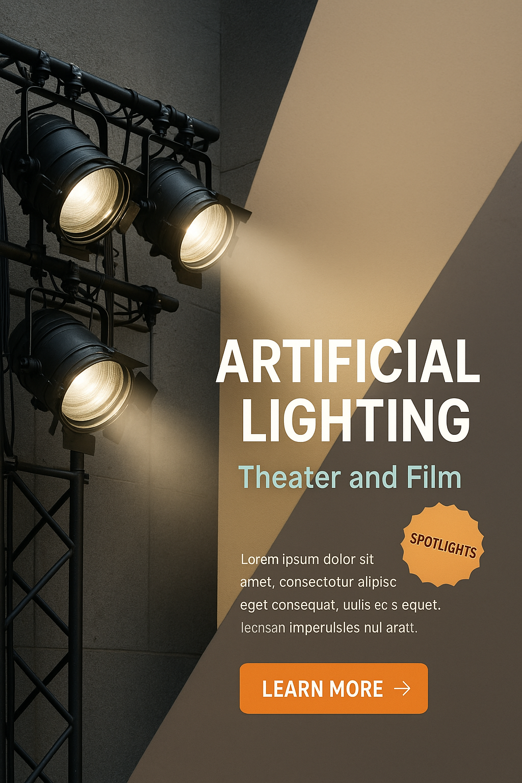 /Collection: /by davooda/Type: PNG/An image showcasing a lighting ramp with powerful spotlights set against a structured background. The design emphasizes artificial lighting concepts used in theater and film, featuring a clear call to action.