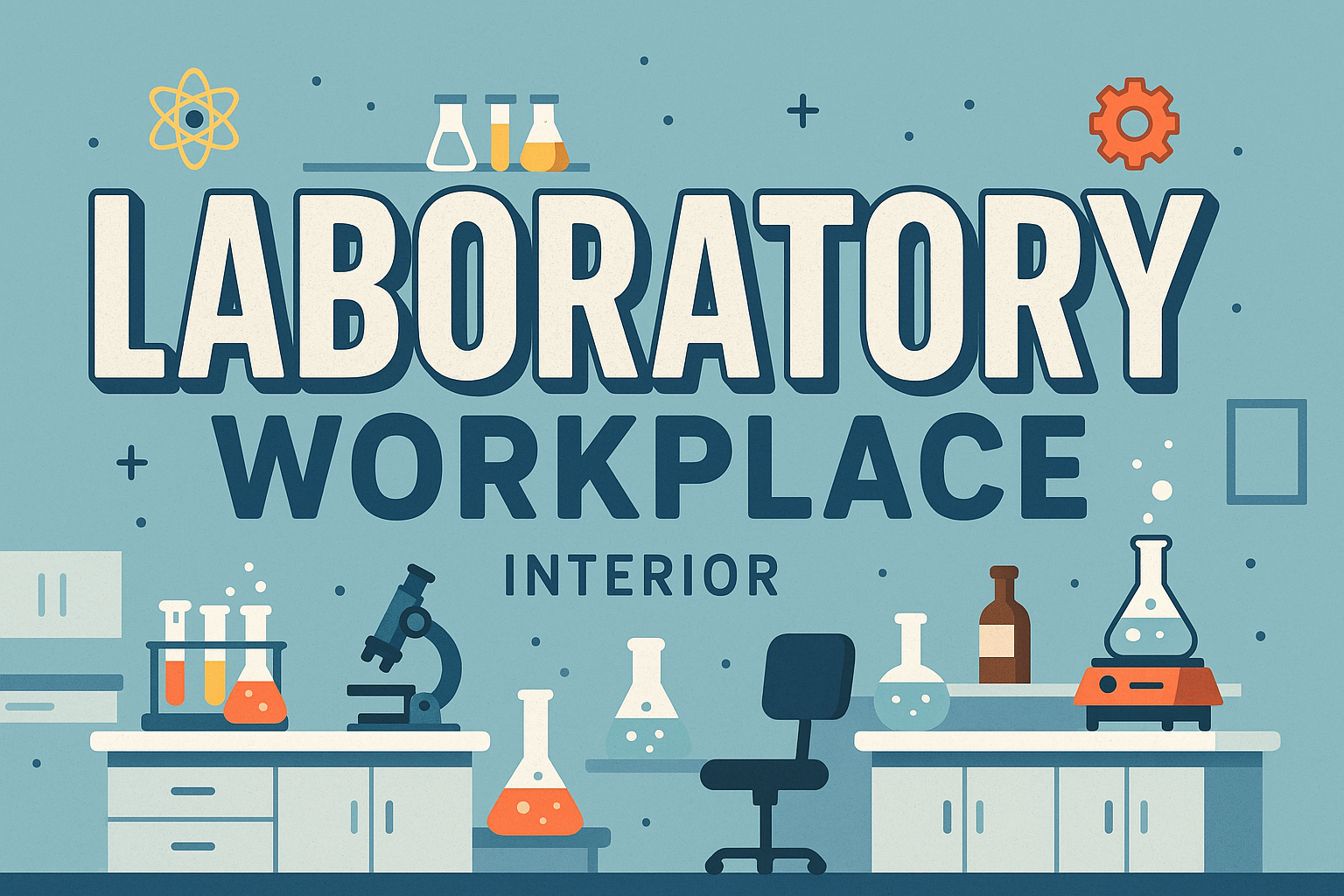 /Collection: /by davooda/Type: PNG/Stylized illustration of a laboratory interior featuring scientific equipment and furniture, ideal for educational or promotional materials related to science.