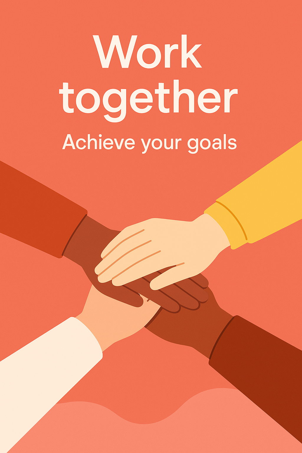 Illustrative Design Focusing on Teamwork with Hands and Bold Typography