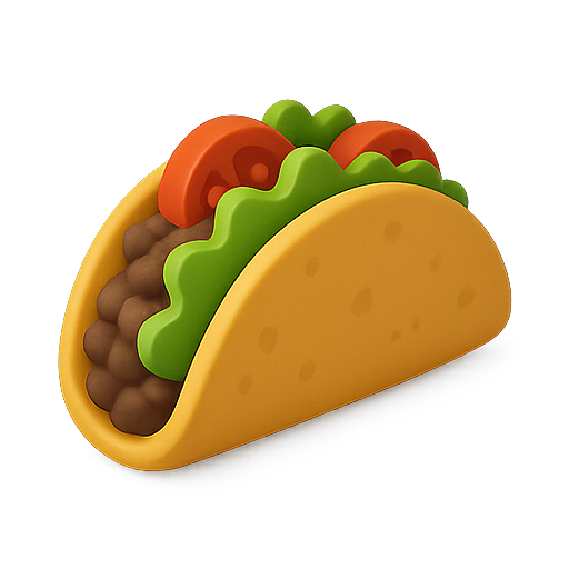 A vibrant 3D illustration of a taco filled with brown beans, green lettuce, and red tomatoes, ideal for food-related graphics or culinary projects.