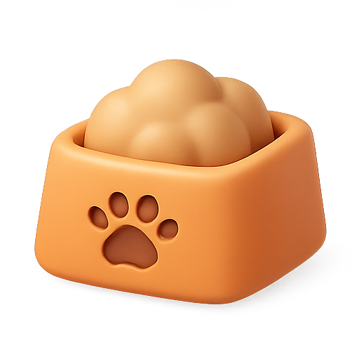 A stylized 3D rendering of a pet food bowl, featuring a paw print design, perfect for pet-related branding or product presentations.