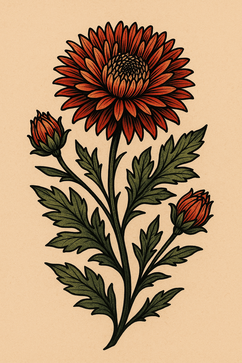 Vibrant Floral Illustration of Red Chrysanthemums