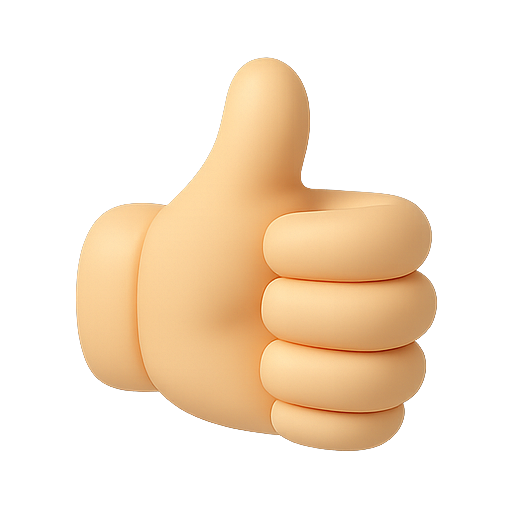 A stylized 3D thumbs up emoji icon featuring a smooth, rounded design. Ideal for digital communication and social media engagement.