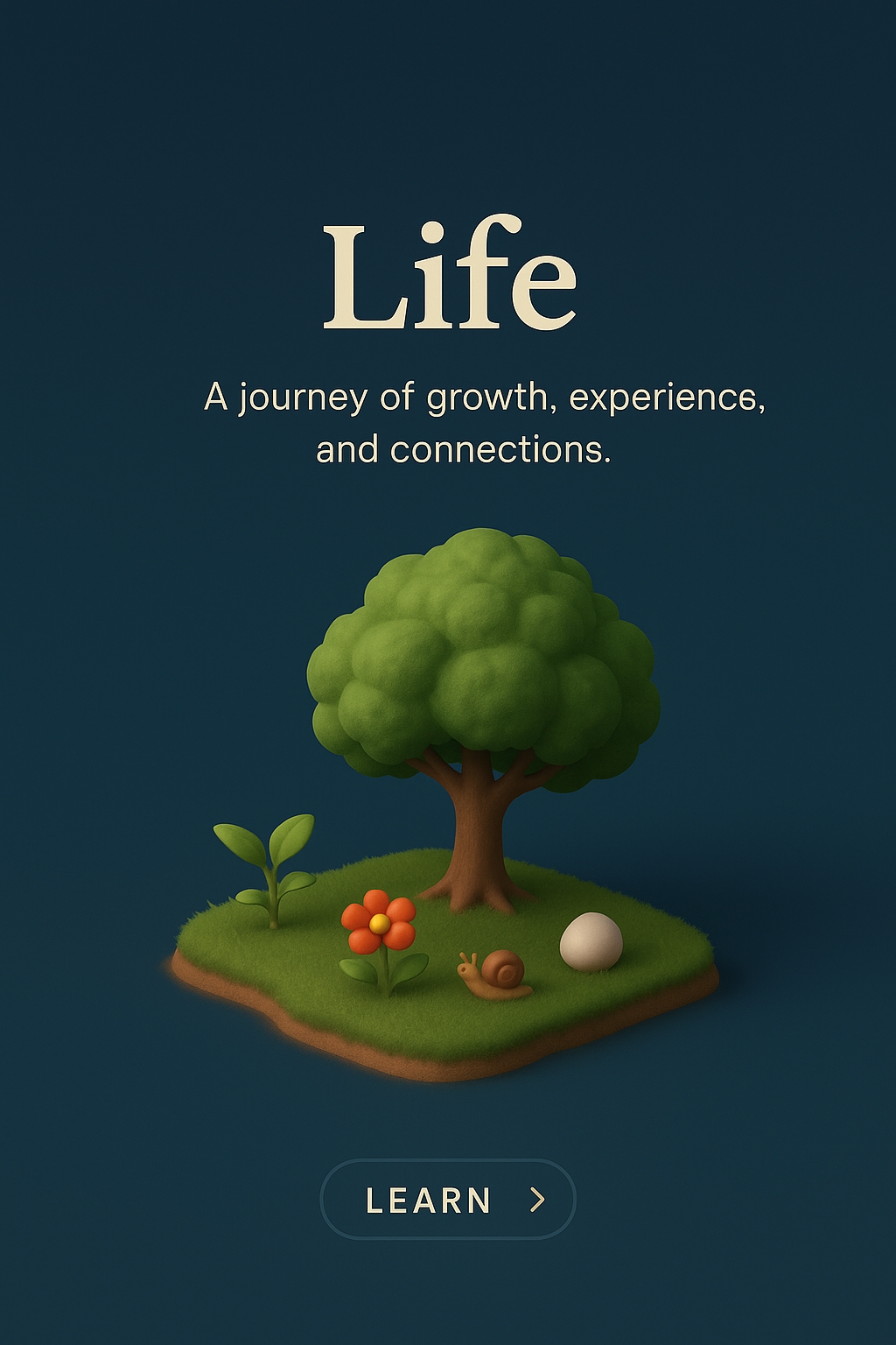 /Collection: /by davooda/Type: PNG/A visually engaging 3D scene depicting the theme of life, featuring a tree, flowers, and natural elements. The dark background enhances the vibrant colors of the illustration.