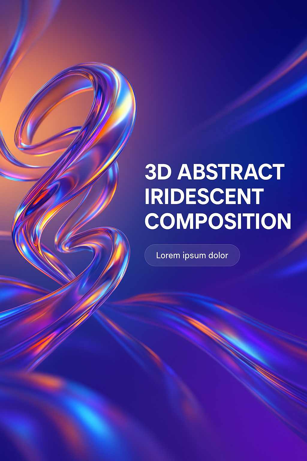 /Collection: /by davooda/Type: PNG/This image features a 3D abstract composition with swirling iridescent shapes against a gradient background, ideal for digital art, design projects, or technology themes.