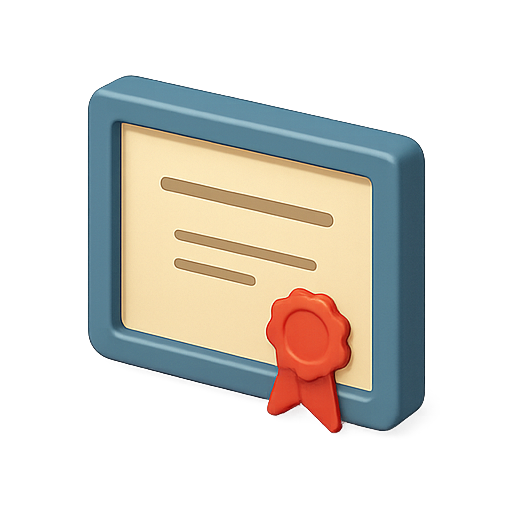 A modern, stylized icon representing a certificate with a red seal. Ideal for educational or achievement-related applications and graphics.