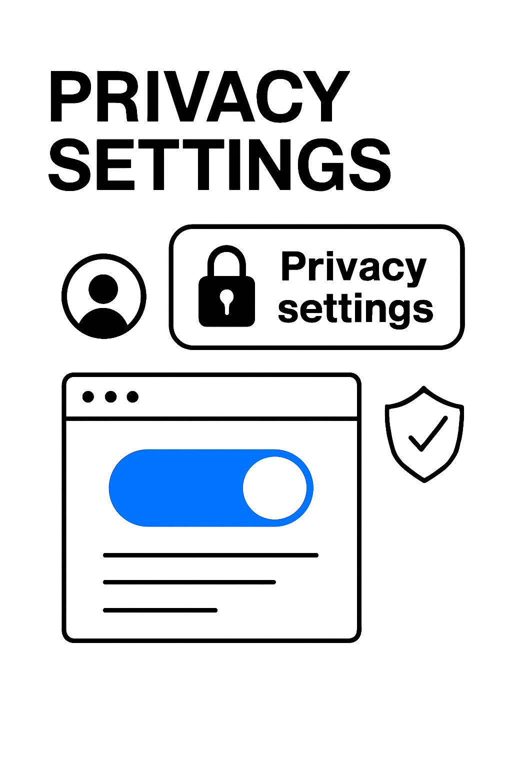 /Collection: /by Sergey Leonov/Type: PNG/Minimalist graphic illustrating a privacy settings interface, featuring toggle switches and security icons, suitable for tech-related content and user guides.