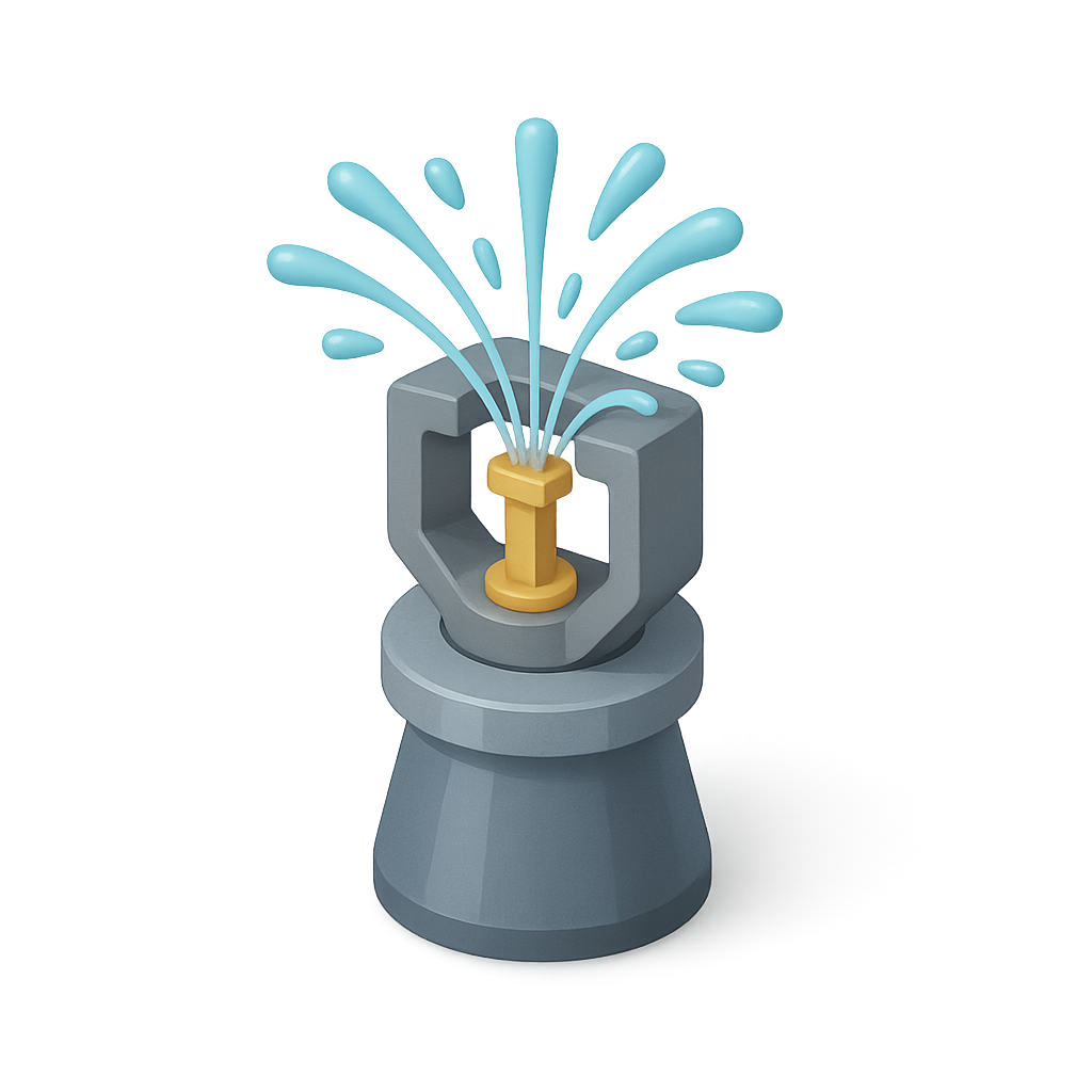 Stylized 3D Sprinkler Icon with Water Splash Effect