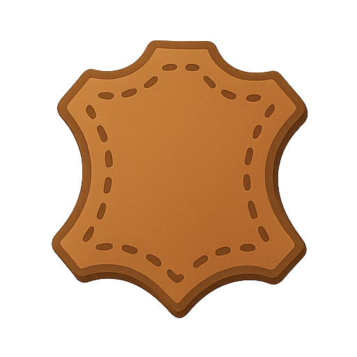 Illustrative icon of a leather patch, featuring a smooth texture and stitched edges. Ideal for fashion, crafting, or design-related projects.
