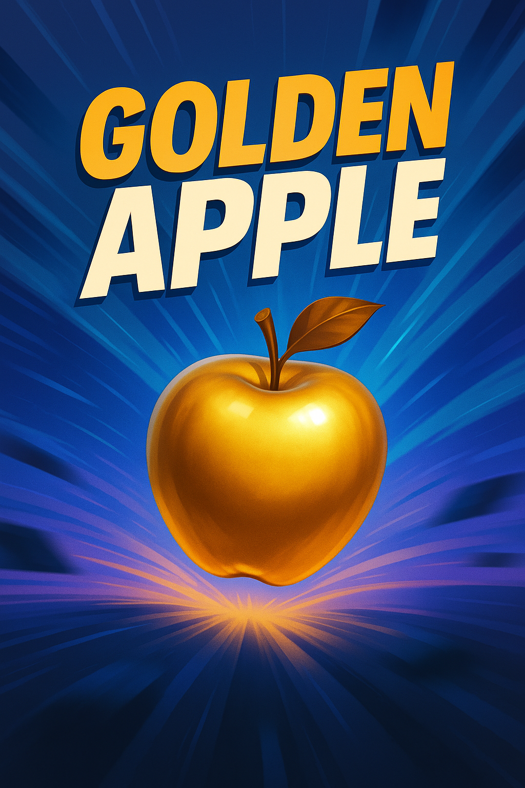 Dynamic Golden Apple Illustration with Engaging Aesthetic
