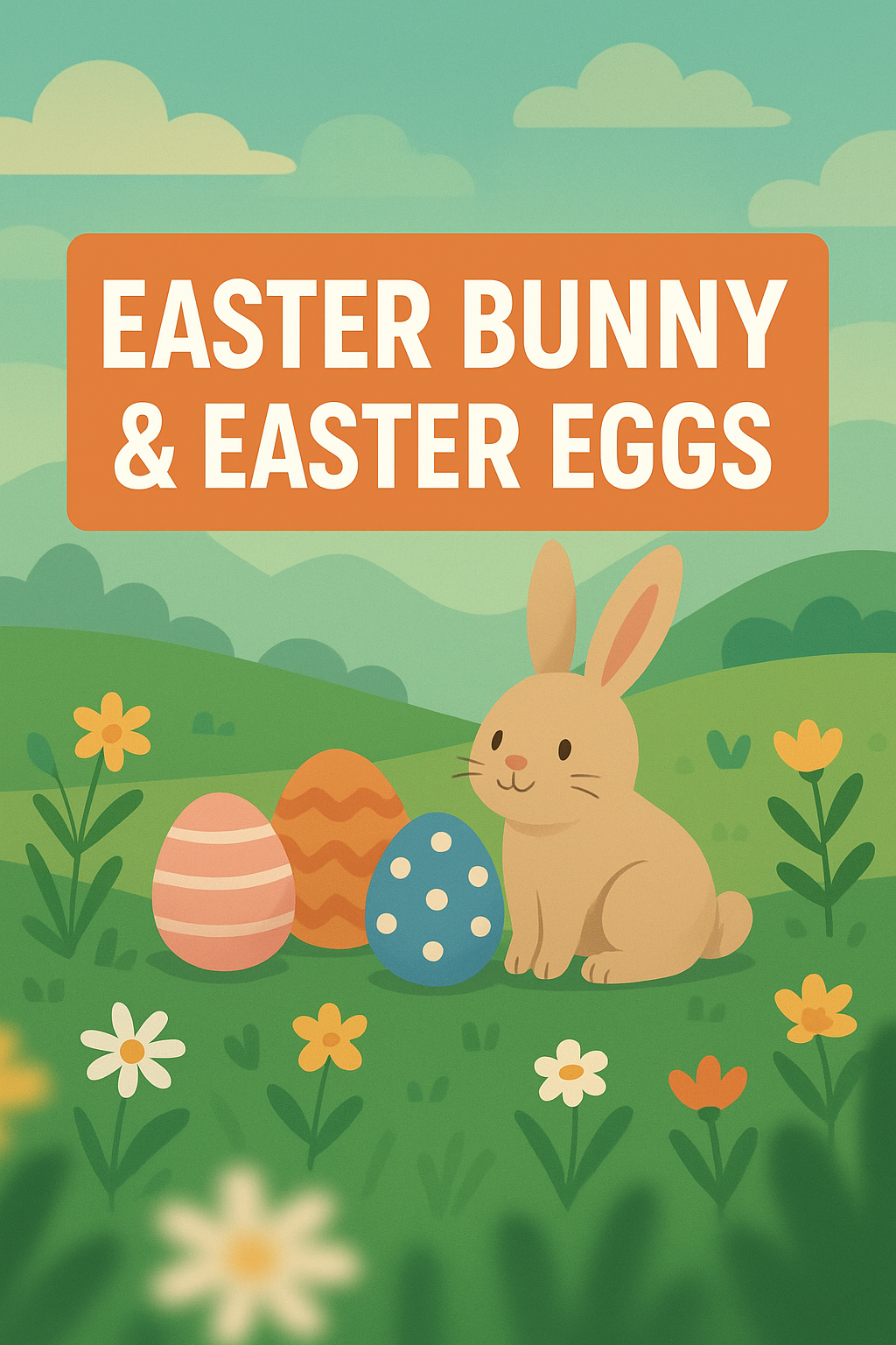 Cheerful Easter Celebration Graphic with Bunny and Eggs