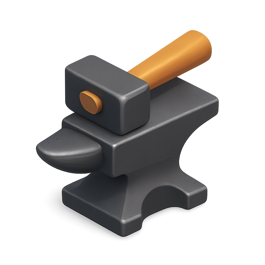 Stylized 3D Blacksmith Icon with Hammer and Anvil