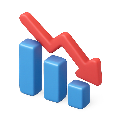 3D Bar Chart with Downward Trend Indicator