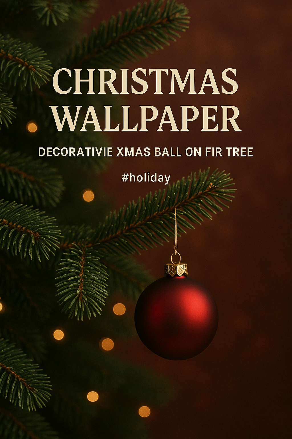 A visually appealing festive wallpaper showcasing a decorative red Christmas ball hanging from a fir tree branch, perfect for holiday-themed designs.