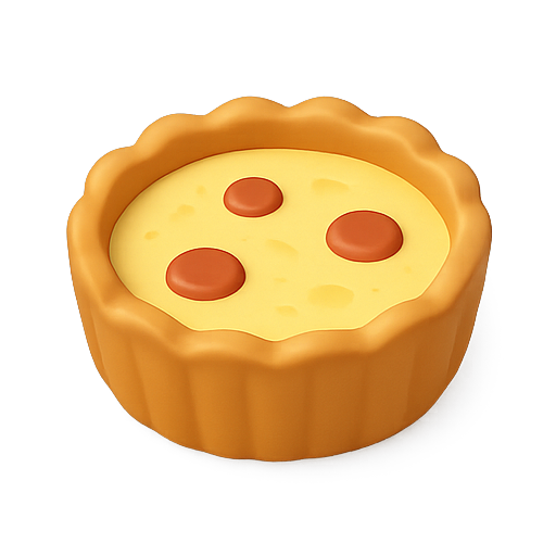 A vibrant and playful 3D illustration of a cheese tart featuring pepperoni toppings, ideal for food-related graphics, menus, or culinary content.