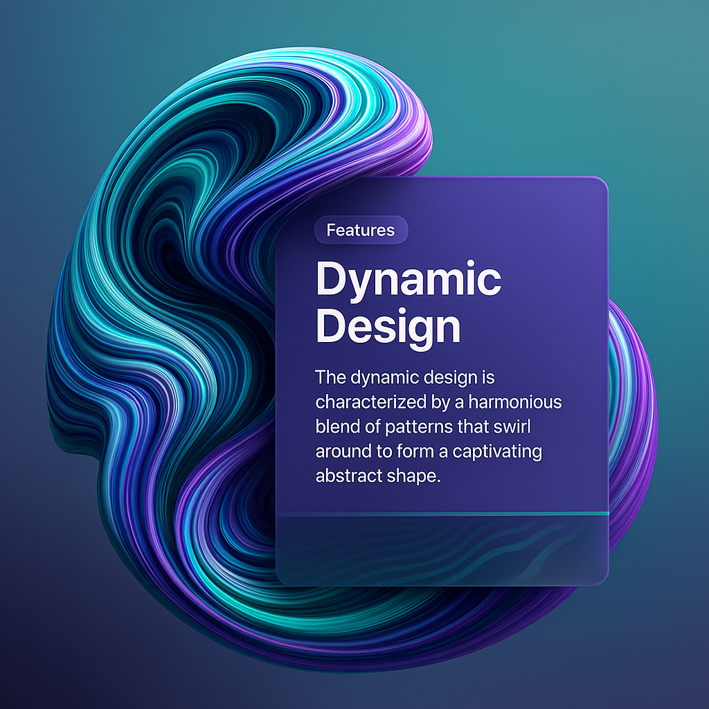 /Collection: /by davooda/Type: PNG/A captivating 3D illustration featuring swirling patterns in vibrant colors. The design integrates text about dynamic design features, creating a harmonious visual experience.