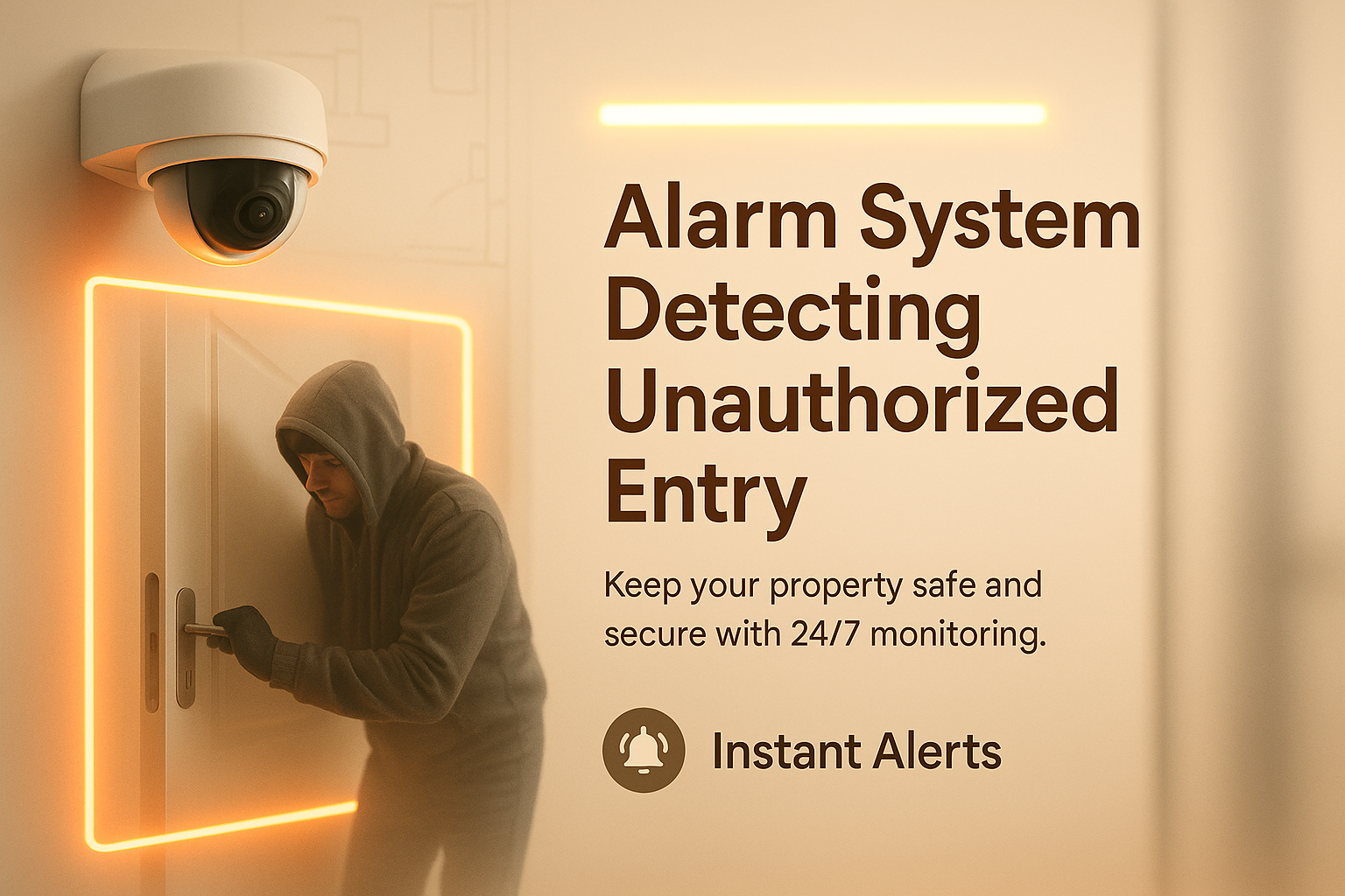 /Collection: /by davooda/Type: PNG/Promotional graphic for a security alarm system highlighting unauthorized entry detection. Features modern design elements suitable for safety marketing.