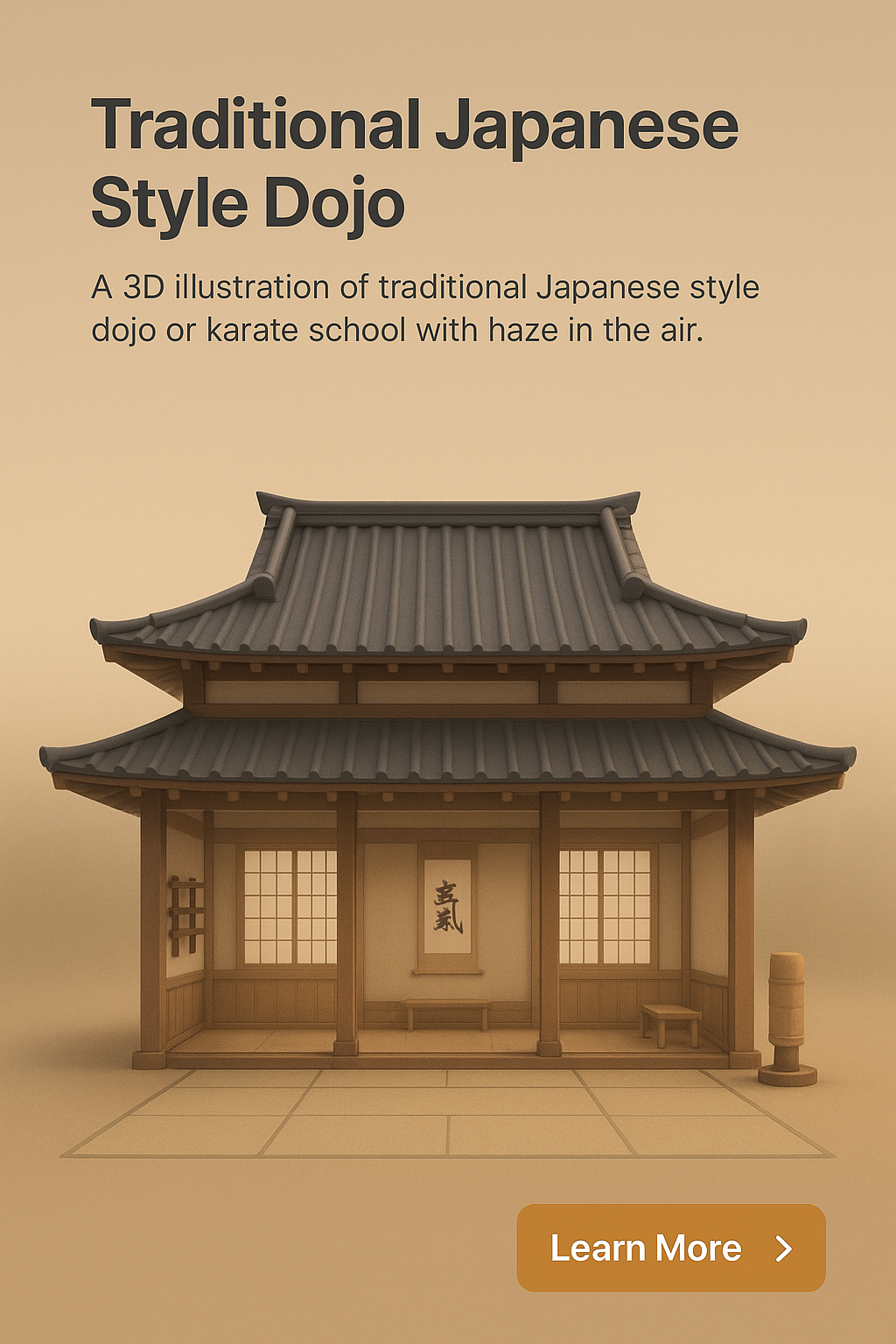 3D Illustration of a Traditional Japanese Dojo with Haze