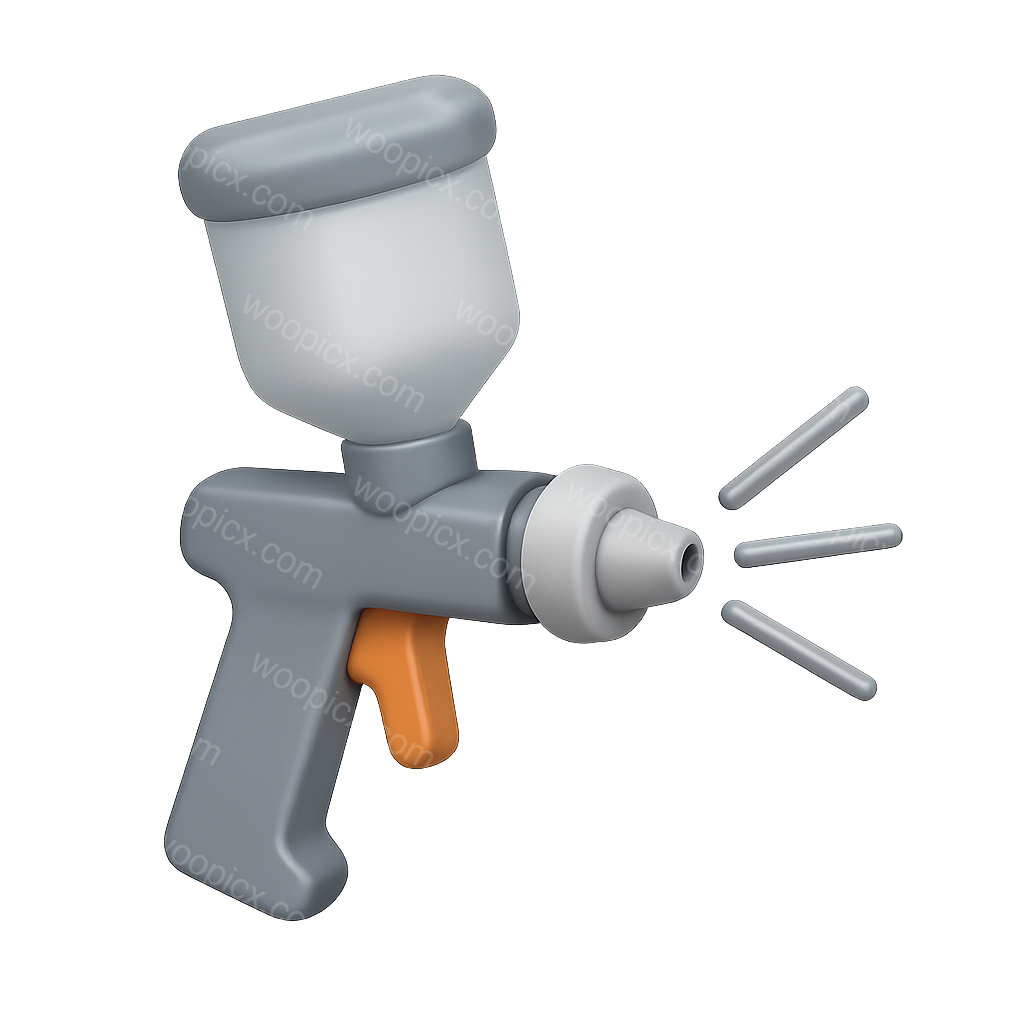 A visually appealing 3D icon of a paint sprayer, featuring a spray gun design with a transparent background and volumetric detailing. It showcases a three-quarter view with a realistic appearance.