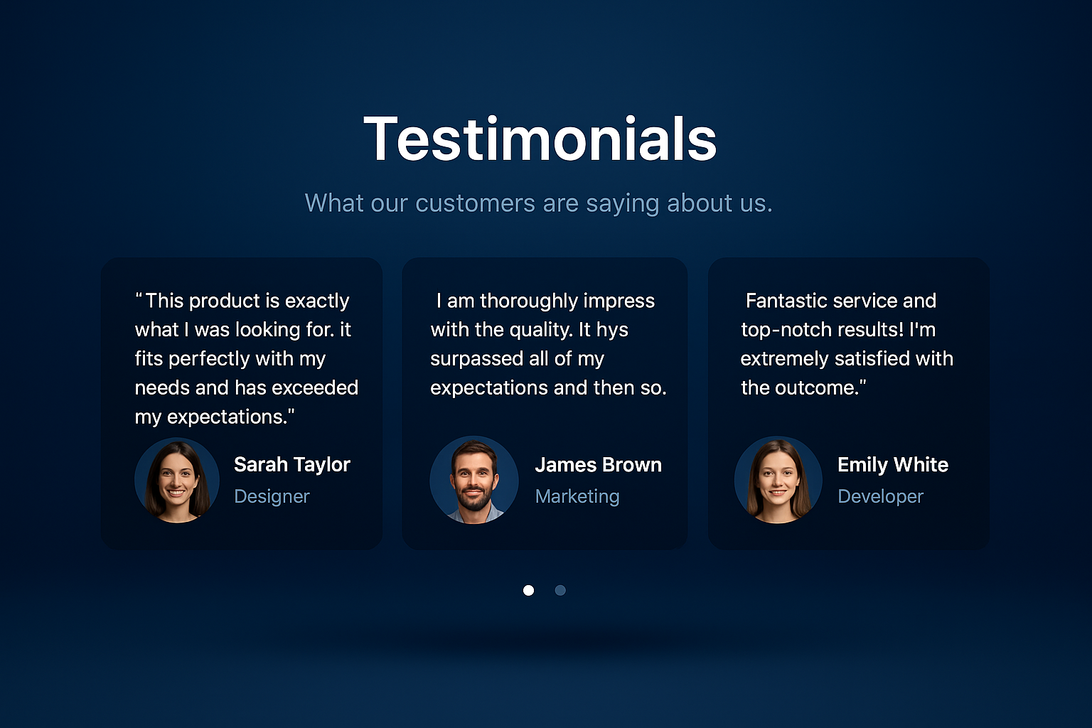 /Collection: /by davooda/Type: PNG/A professional 3D design featuring customer testimonials with a gradient blue background and confetti effect. Each testimonial card includes a round photo, name, and position.