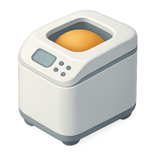 /Collection: /by davooda/Type: PNG/A sleek illustration of a modern bread maker featuring a round dough ball inside. This graphic showcases a minimalist design with a digital interface, ideal for product showcases or kitchen appliance marketing.